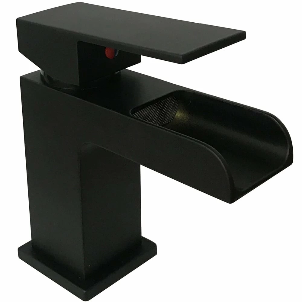 Astini Straight Waterfall Matt Black Bathroom Basin Mixer Tap & Slotted Push Open Waste ASTZB05KAV