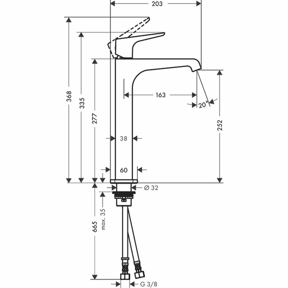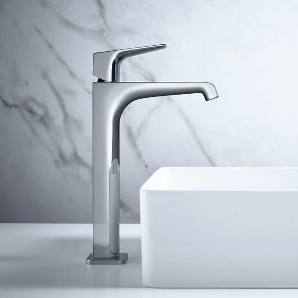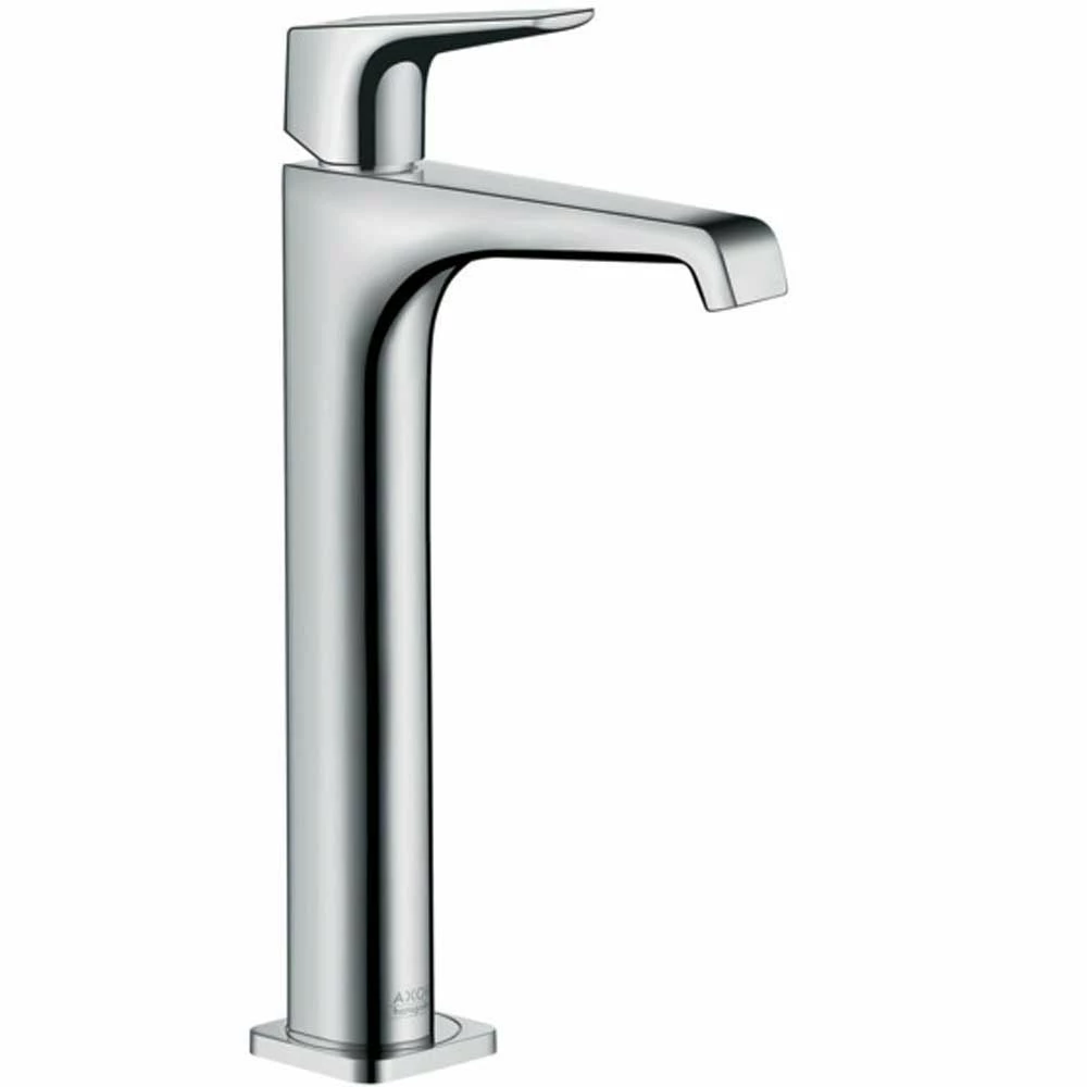 - AXOR Citterio E constitutes a breakthrough in international faucet design, enabling sophisticated joystick technology, even at reduced dimensions. Crowned by an intuitive pin handle, sensuous and sensitive to the touch, the AXOR Citterio E single-lever basin mixer is shown here finished in Brushed Black Chrome. The mixer’s dynamic linearity, intricate angularity and sensuous planarity converge perfectly in a noticeably narrowing, gracefully tapering spout.