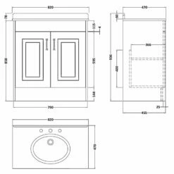 Nuie Lunar Satin Grey 800 Floor Standing 2-Drawer Vanity Unit & Basin