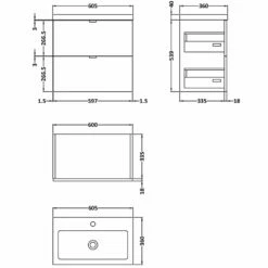 Hudson Reed Fusion Charcoal Black 600mm Wall Hung Vanity Unit & Basin CBI630