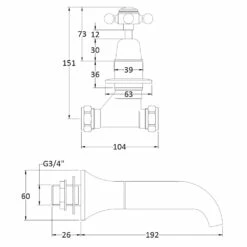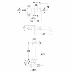 Hudson Reed Topaz Black Crosshead Dome Collar 3 Hole Wall Mount Bath Mixer Tap – BC409DX
