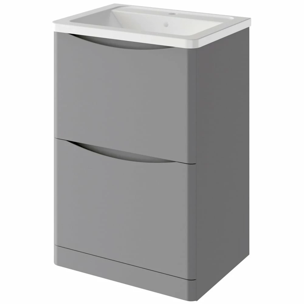 Nuie Arno Gloss White 600mm Floor Stading 2-Drawer Vanity Unit & Basin 1