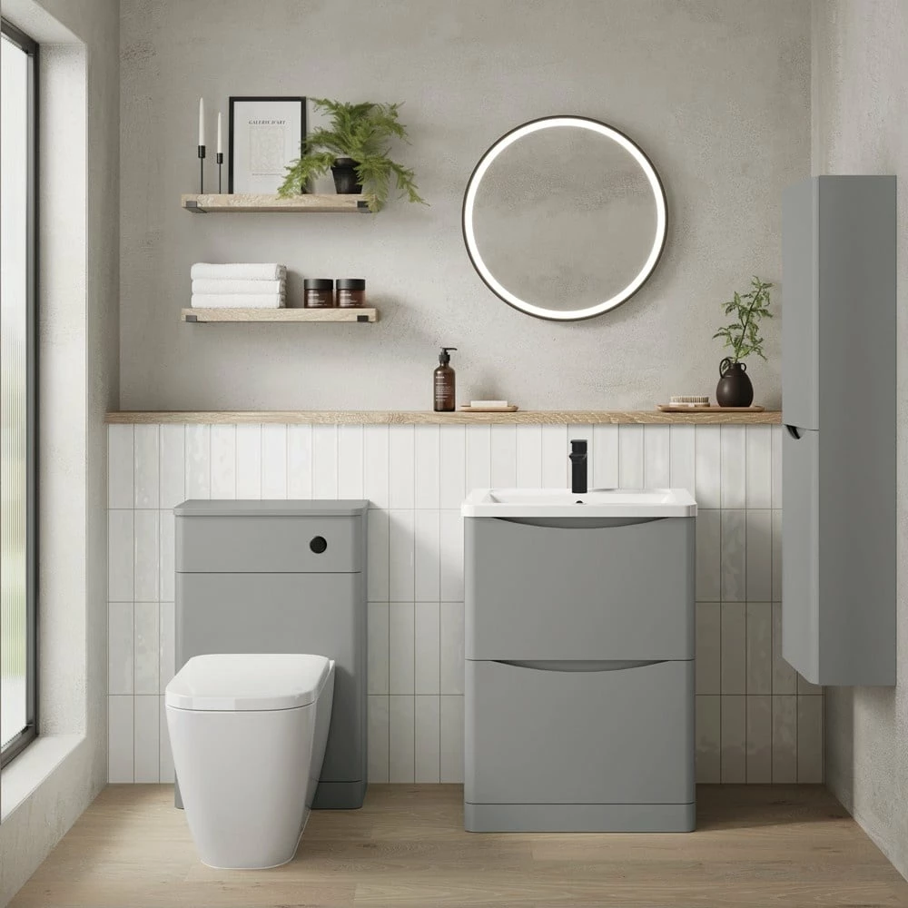 Hudson Reed Fluted Satin Grey 500mm Wall Hung 2-Drawer Vanity Unit & Basin 1