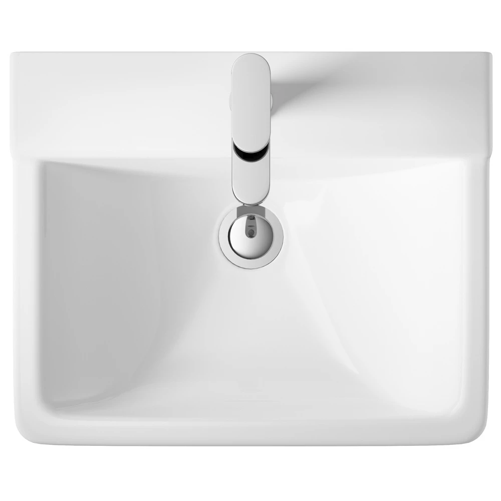 - Softly tapered basin design with wide tap deck