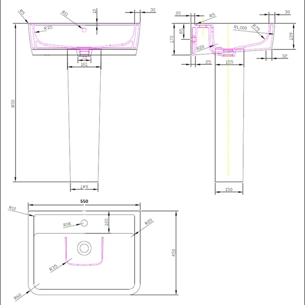 - Inner Bowl Dimension – Width: 450mm