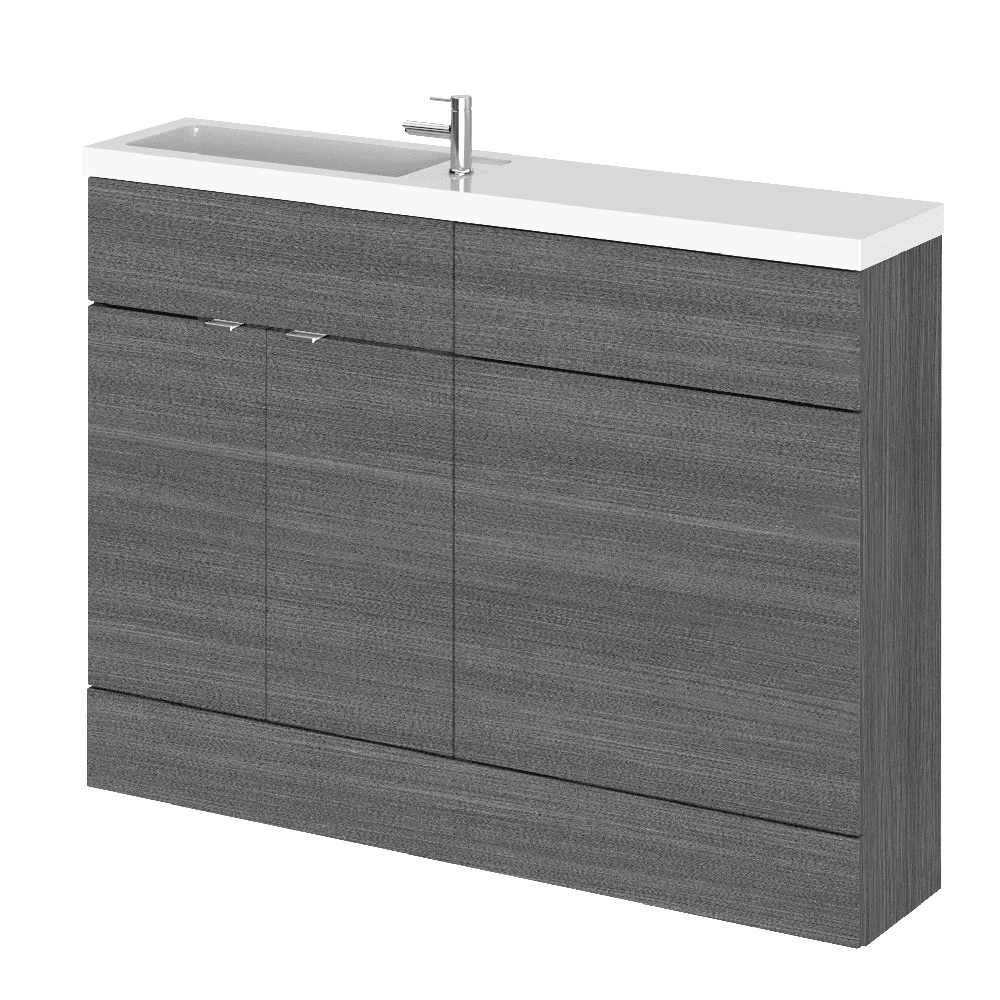 - The unique combination of the grey avola finish and natural wood grain creates a focal point in your bathroom