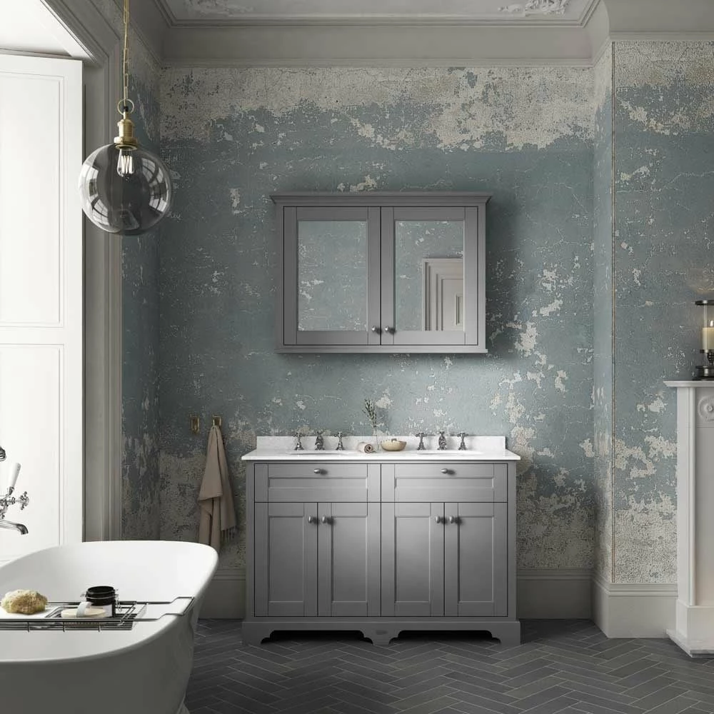 - Add a cool touch of colour to your bathroom with this Storm Grey mirror