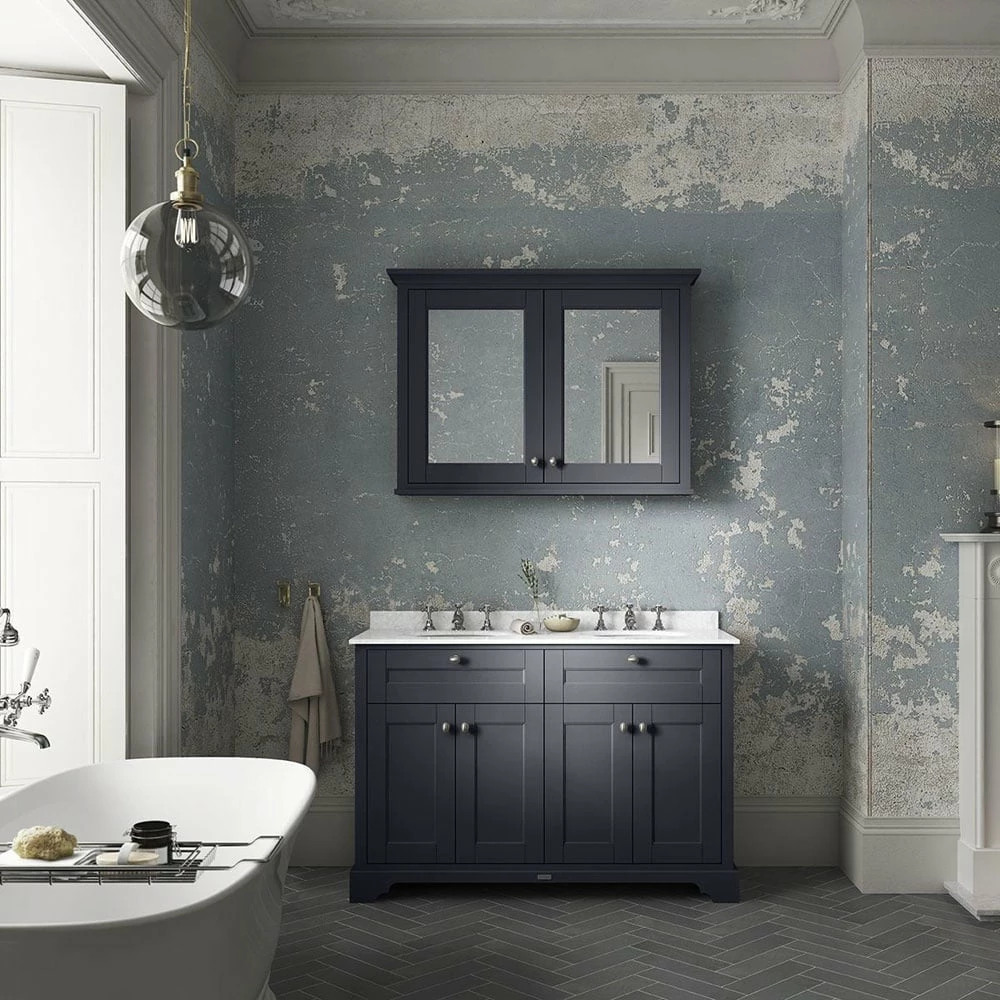 - The striking finish of this Twilight blue mirror will add contrast and impact to your traditional bathroom