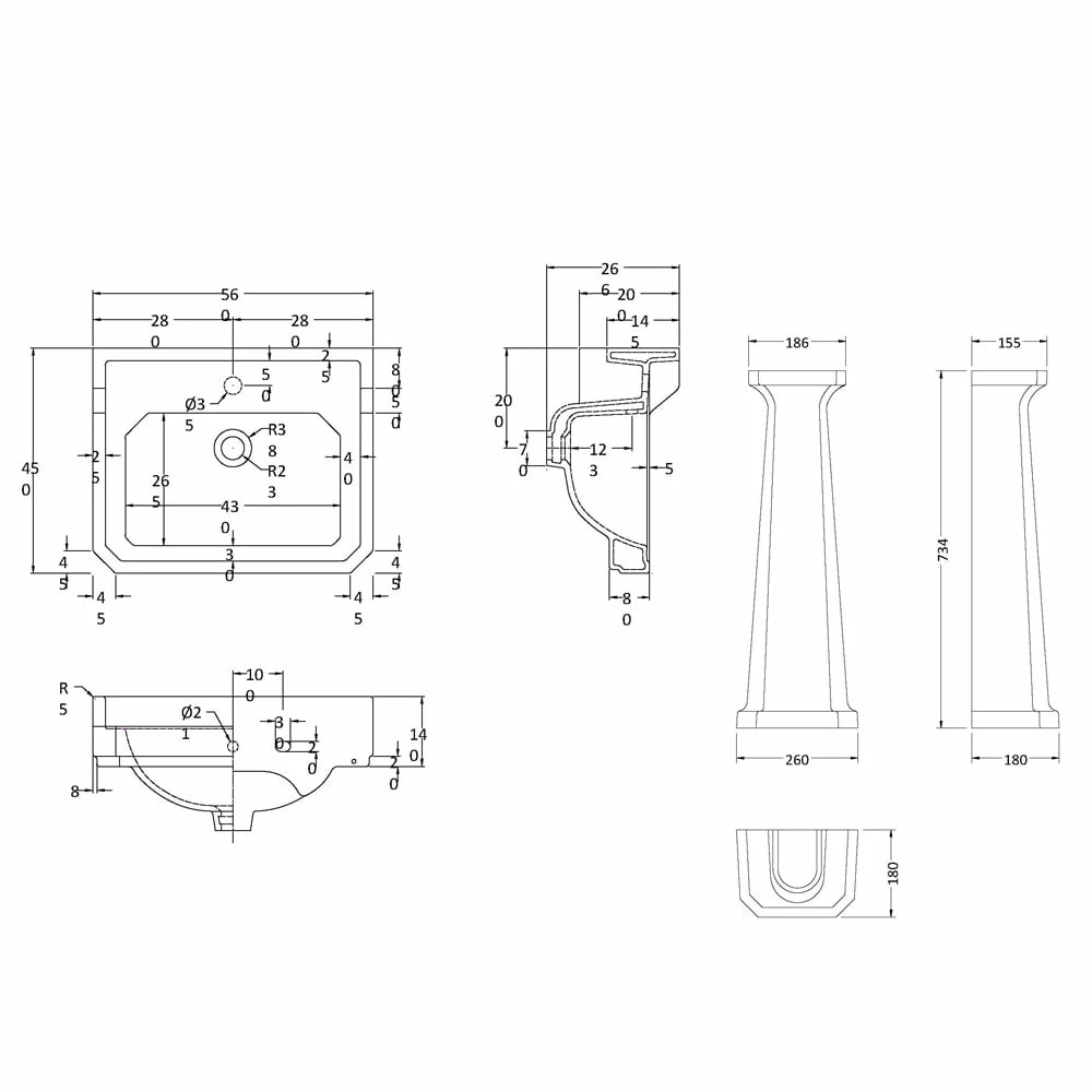 - Supplied with a full pedestal for a classic look