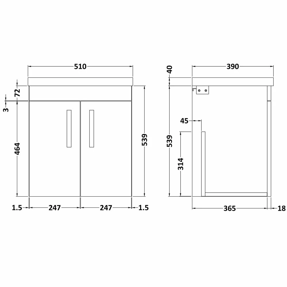 - Cabinet Thickness: 18mm