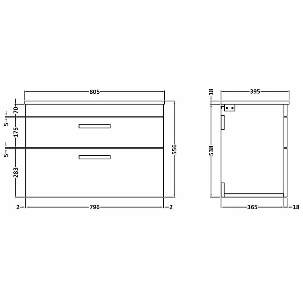 - Drawer Type: 80mm High Metal Softclose