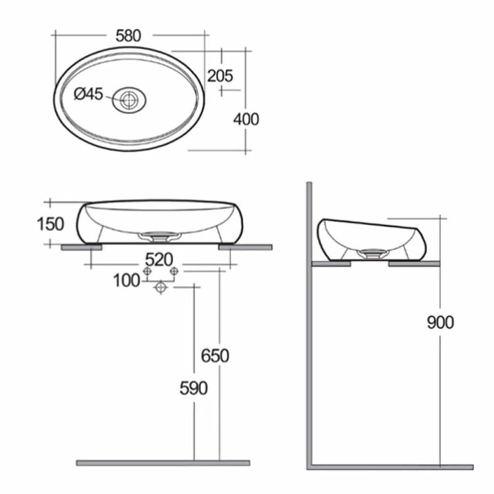 - Does not come with a tap hole – a tall/extended mono basin mixer should be used