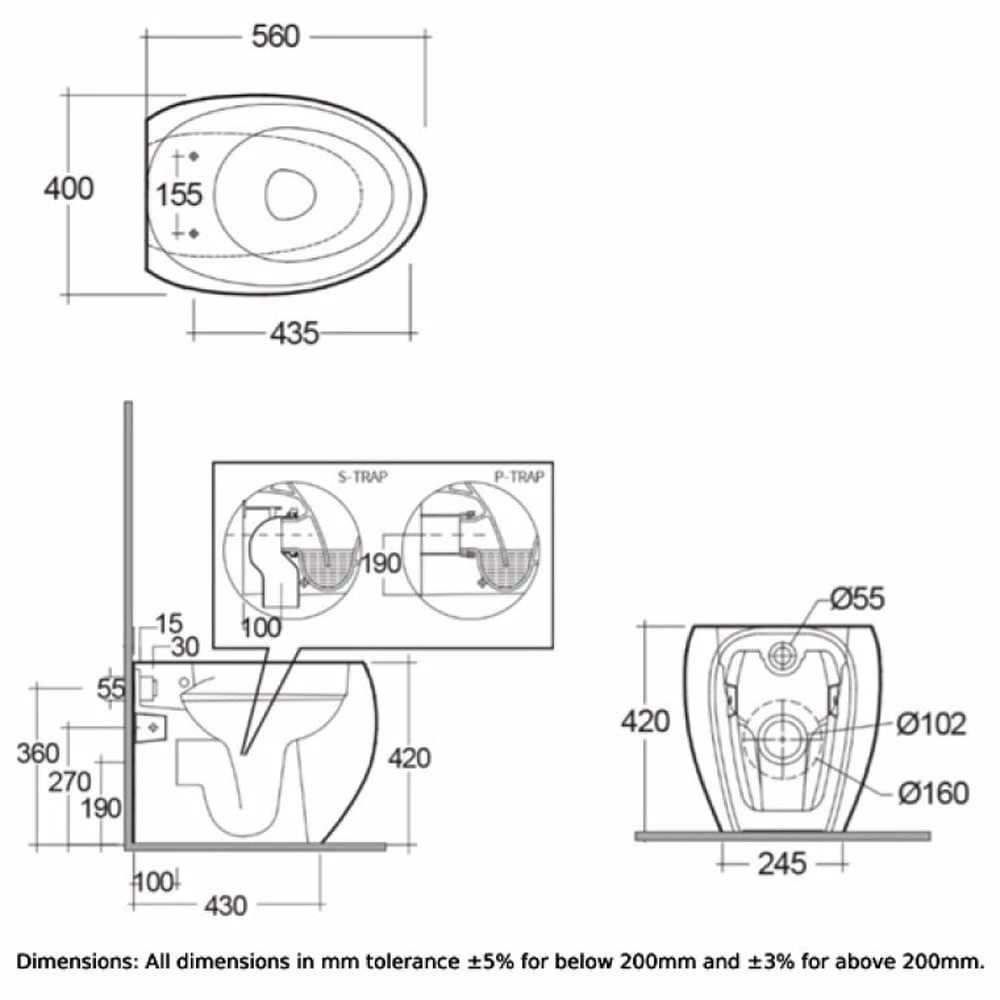 | All dimensions are in mm, with a tolerance (variance) of ±2% on all measurements | |
