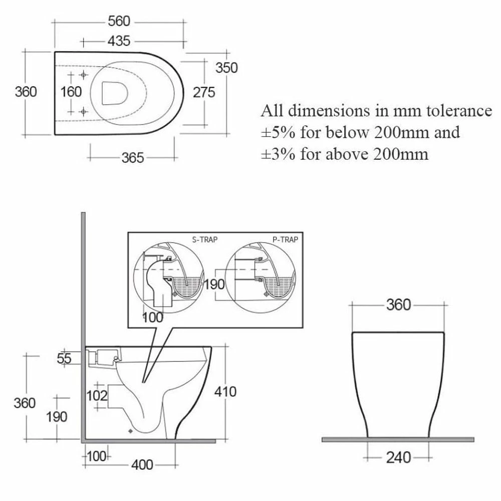 | All dimensions are in mm, with a tolerance (variance) of ±2% on all measurements | |