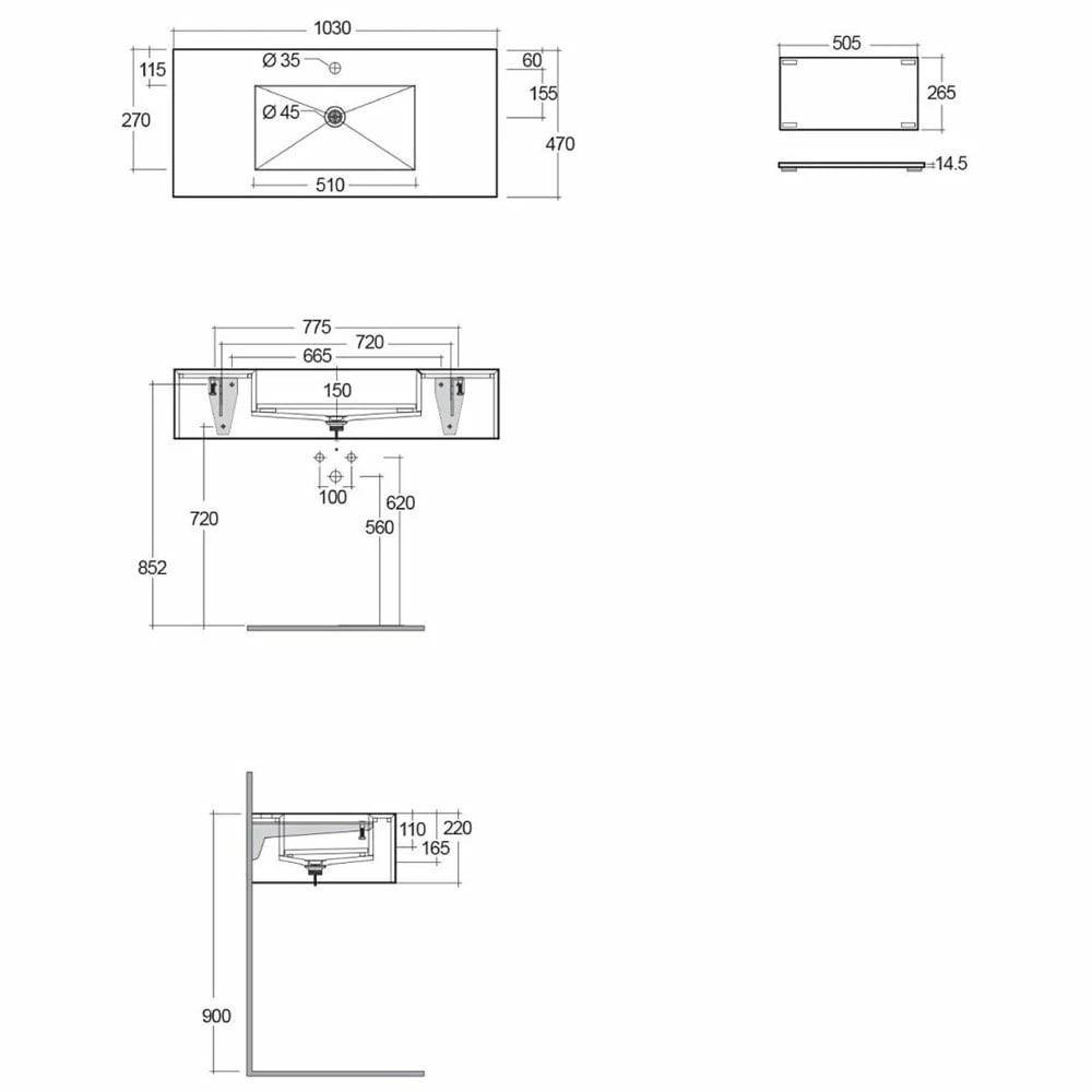 | Main Bowl Size (Length x Width x Depth) | 510mm x 270mm x 165mm |