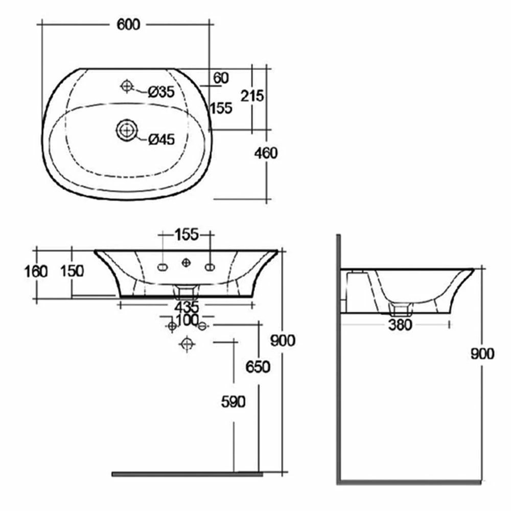 - Basin Bowl Height: 150mm