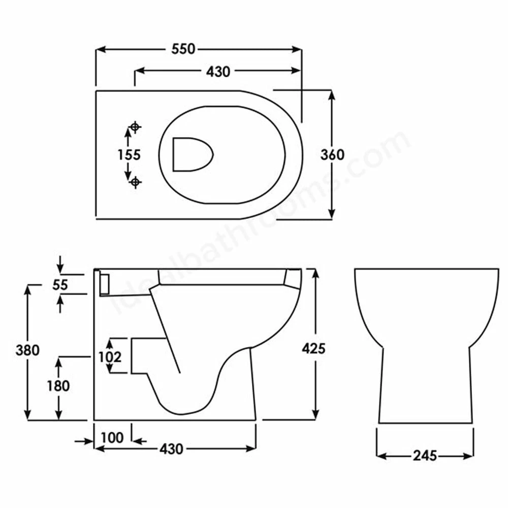 - Toilet Seat Hole Centres: 155mm