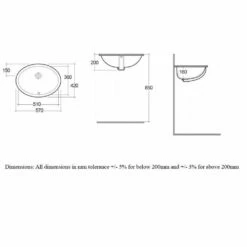 RAK Rosa Alpine 570×420 White Undermount Wash Basin – ROSAVB57