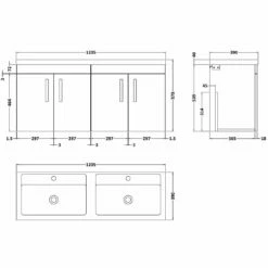 Nuie Athena Charcoal Black 1200mm Wall Hung 4 Door Vanity & Double Basin
