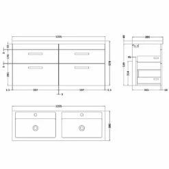 Nuie Athena Charcoal Black 1200mm Wall Hung 4 Drawer Vanity & Double Basin