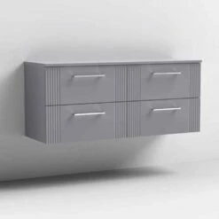 Nuie Deco Satin Grey 1200 Wall Hung 4-Drawer Vanity Unit & Worktop
