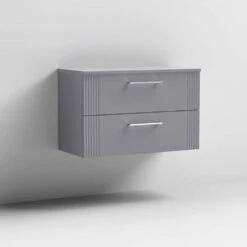 Nuie Deco Satin Grey 800mm Wall Hung 2-Drawer Vanity Unit & Worktop