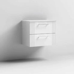 Nuie Deco Satin White 600mm Wall Hung 2-Drawer Vanity Unit & Worktop